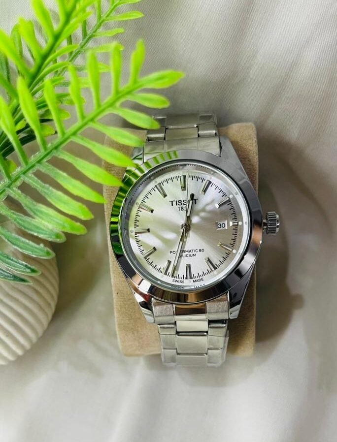The Tissot Gentleman Powermatic 80 Silicium with Silver Dial and Stainless Steel Chain is a sophisticated expression of Swiss innovation and style. Powered by the remarkable Powermatic 80 movement, it offers up to 80 hours of power reserve and features a silicon balance spring for enhanced precision and resistance to magnetic fields. Its refined silver dial, accented with polished hands and indices, reflects understated elegance, while the stainless steel case and bracelet ensure durability and modern appeal. Perfect for both business and casual occasions, this timepiece embodies Tissot’s dedication to craftsmanship, reliability, and timeless design—making it an ideal companion for the modern gentleman.